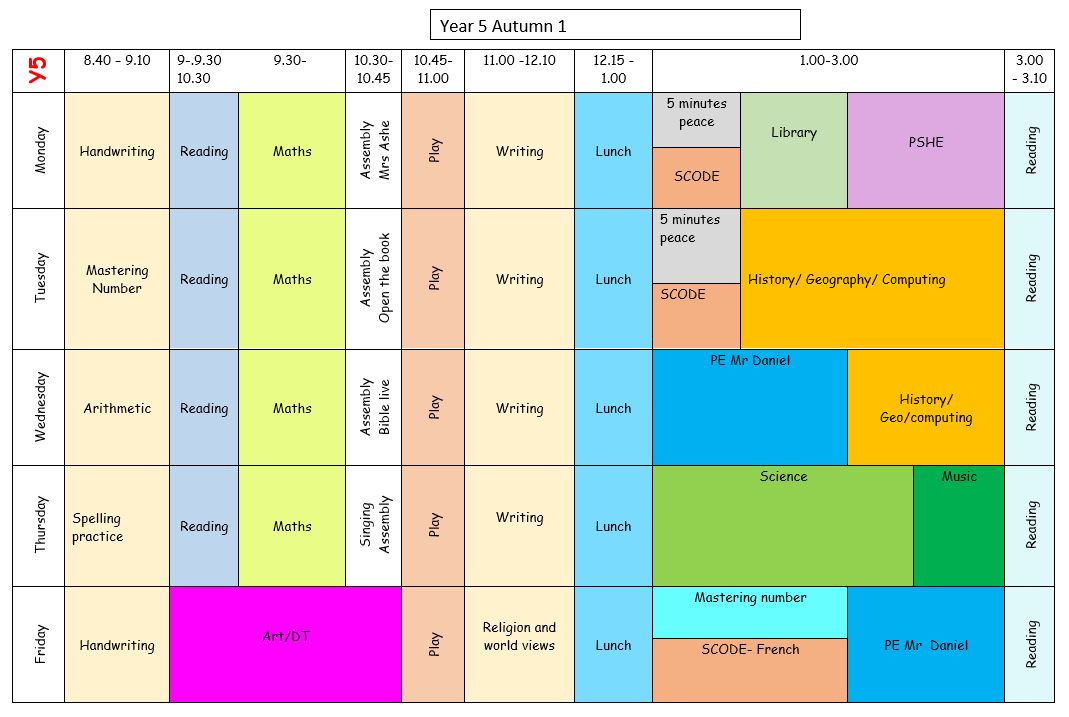 Year 5 receive homework every two weeks, which are posted on Google Classroom. These are posted on Friday and will be due in two weeks later.